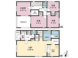 | 間取り | 4LDK 間取り内訳:リビングダイニングキッチン 18帖(1階)・洋室 7.5帖(2階)・洋室 5.8帖(2階)・洋室 5帖(2階)・洋室 4.8帖(2階) |