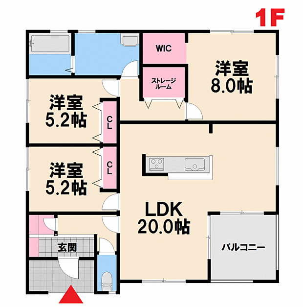 | 間取り | 3LDK 間取り内訳:リビングダイニングキッチン 20帖(1階)・洋室 8帖(2階)・洋室 5.2帖(2階)x2 |