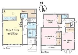 間取り内訳:リビングダイニングキッチン 17.7帖(1階)・収納 5.2帖(1階)・洋室 6帖(2階)・洋室 7.5帖(2階)・洋室 6.5帖(2階)