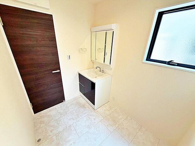 家族の会話を楽しみながら料理ができる対面キッチン♪3口コンロで朝の忙しい時間も時短でお料理することができます♪三面鏡にハンドシャワー付き◎使いやすい洗面台♪収納が充実しているので綺麗が保てます◎
