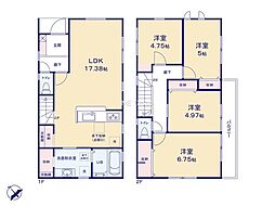 | 間取り | 3LDK 間取り内訳:リビングダイニングキッチン 14.7帖(1階)・洋室 5.2帖(2階)・洋室 6.5帖(2階)・洋室 7.8帖(2階)・収納 2.2帖(2階) |