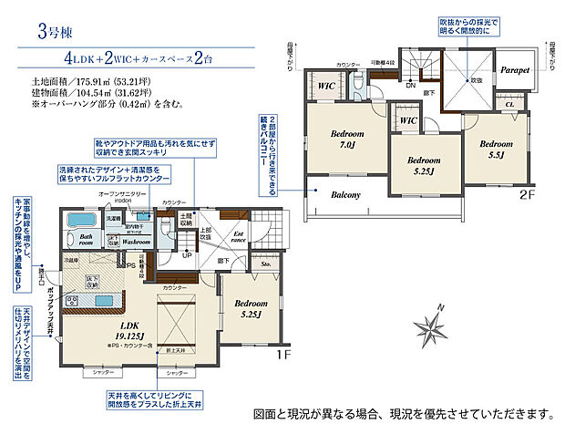 104.54m2(約31.62坪)~107.69m2(約32.57坪) |
