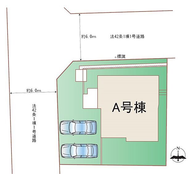 『接道』角地 西6m公道 北6m公道