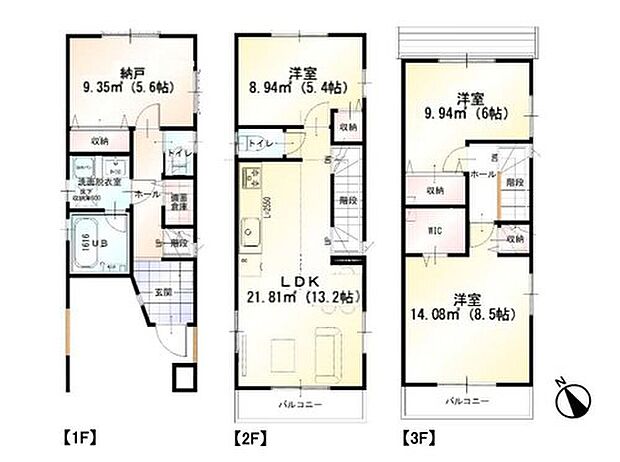 間取り 3LDK+S(納戸) 建物階 地上3階 木造