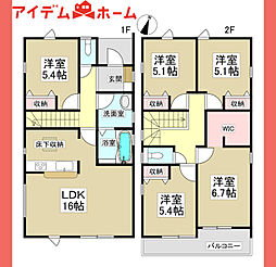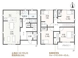 間取り内訳:リビングダイニングキッチン 16帖(1階)・和室 4.5畳(1階)・洋室 8帖(2階)・洋室 7.5帖(2階)・洋室 6帖(2階)