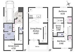| 間取り | 2SLDK 間取り内訳:リビングダイニングキッチン 20.1帖(2階)・洋室 7.5帖(3階)・洋室 7.2帖(3階)・収納 7.2帖(1階) |