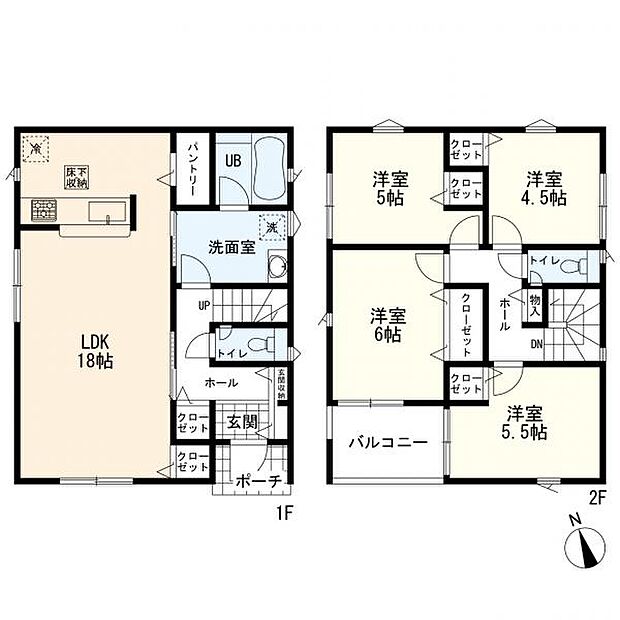 18帖超のLDK■4LDK■対面キッチン■カースペース2台分(車種による)