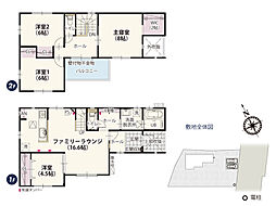 | 間取り | 3SLDK 間取り内訳:リビングダイニングキッチン 17帖(1階)・洋室 6.7帖(2階)・洋室 5.7帖(2階)・洋室 4.5帖(2階)・収納 5帖(2階) |