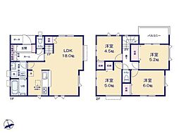 間取り内訳:洋室 7.5帖(1階)・リビングダイニングキッチン 18.2帖(2階)・洋室 6帖(2階)・洋室 6帖(3階)x2