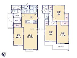 | 間取り | 4LDK 間取り内訳:リビングダイニングキッチン 19.5帖(1階)・洋室 5.3帖(2階)x3・洋室 6.5帖(2階) |