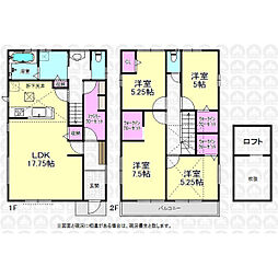間取り内訳:洋室 6帖(2階)・リビングダイニングキッチン 16帖(1階)・洋室 5.2帖(1階)・洋室 7.5帖(2階)・洋室 6.5帖(2階)