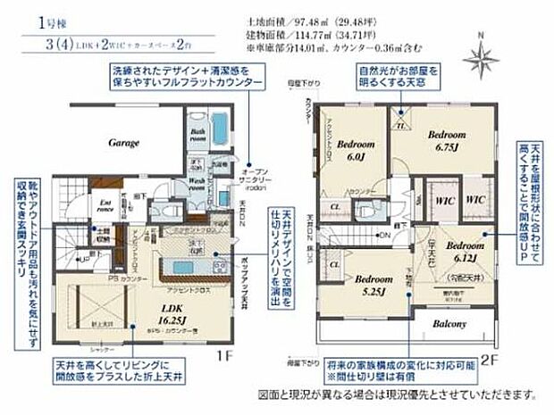 • 2WIC、土間収納付きの収納豊富な3(4)LDK!3面採光×南向きのLDK16.25帖。間取り変更可能なフレキシブルルーム仕様。