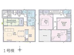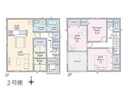 | 間取り | 3SLDK 間取り内訳:リビングダイニングキッチン 16.5帖(1階)・和室 4畳(1階)・洋室 7帖(2階)・洋室 6帖(2階)・収納 5.2帖(2階) |