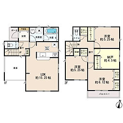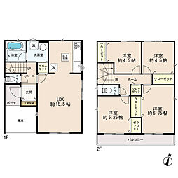 | 間取り | 4LDK 間取り内訳:リビングダイニングキッチン 15.5帖(1階)・洋室 6.7帖(2階)・洋室 5.2帖(2階)・洋室 4.5帖(2階)・洋室 4.5帖(2階) |