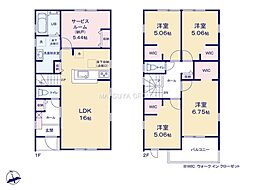 | 間取り | 4SLDK 間取り内訳:リビングダイニングキッチン 16帖(1階)・収納 5.5帖(1階)・洋室 6帖(2階)・洋室 5.6帖(2階)・洋室 5帖(2階)・洋室 4.4帖(2階) |