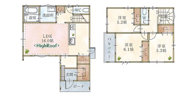 | 間取り | 3LDK 間取り内訳:その他 16帖・洋室 6.1帖・洋室 5.3帖・洋室 5.2帖 |