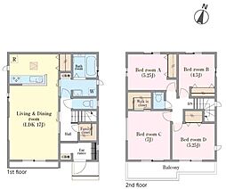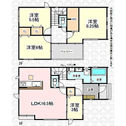 | 間取り | 2SLDK 間取り内訳:リビングダイニングキッチン 20帖(1階)・洋室 6.5帖(2階)・洋室 5帖(2階)・収納 6.5帖(2階) |