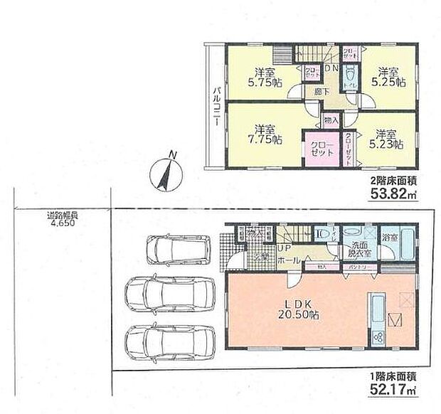 | 間取り | 4LDK 間取り内訳:リビングダイニングキッチン 20.5帖(1階)・洋室 7.7帖(2階)・洋室 5.7帖(2階)・洋室 5.2帖(2階)・洋室 5.2帖(2階) |