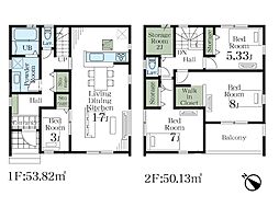 - 「建築条件付き土地」の「建物プラン例」は、土地購入者の設計プランの一例であり、プランの採用可否は任意です。