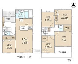 | 間取り | 5LDK 間取り内訳:リビングダイニングキッチン 15.7帖(1階)・洋室 4.3帖(1階)・洋室 7.2帖(2階)・洋室 5.4帖(2階)・洋室 5.4帖(2階)・洋室 5.4帖(2階) |