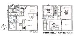 | 間取り | 3LDK 間取り内訳:リビングダイニングキッチン 17.6帖(1階)・洋室 6.8帖(2階)・洋室 6帖(2階)・洋室 4.5帖(2階) |