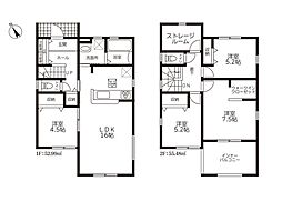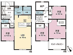 間取り内訳:洋室 4.5帖(1階)・洋室 7.5帖(2階)・リビングダイニングキッチン 16帖(1階)・洋室 5.2帖(2階)・洋室 5.2帖(2階)・収納(2階)