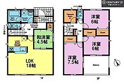 | 間取り | 3LDK(+タタミコーナー(3帖)) 間取り内訳:リビングダイニングキッチン 18帖・洋室 7.5帖・洋室 6.5帖・洋室 6帖 |