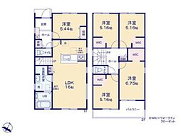 | 間取り | 5LDK 間取り内訳:リビングダイニングキッチン 16帖・洋室 5.4帖・洋室 6.7帖・洋室 5.1帖・洋室 5.1帖・洋室 5.1帖 |