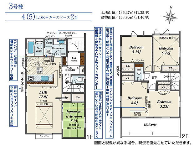 • 「土地(建築条件なし)」の「建物プラン例」に関して、そのプラン例は特定の建築請負会社によるもので、当該建築請負会社以外で建てた場合、同様のものが同価格で建てられるとは限りません。また、建築請負会社を特定するものではありません。