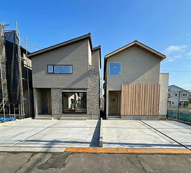 • 【【外観/既分譲】】グレーをメインとした、モダンで落ち着きのある外観です。全棟カースペース2台以上を確保(車種による)。個性豊かなモデルハウスが誕生予定です。お気軽にお問合せ下さい。※外構はAIによる完成予想画像です。