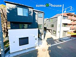 ●デザイナーズ住宅!あざみ野駅9分、平坦な道のりと南道路の陽光。広々LDKとリビングイン階段の4LDK♪ ●青空に映えるモダンなツートンカラーの外観 開放感あふれる3階建て邸宅  ●明るい陽光が降り注ぐ住まいで、心地よい新生活を始めませんか?