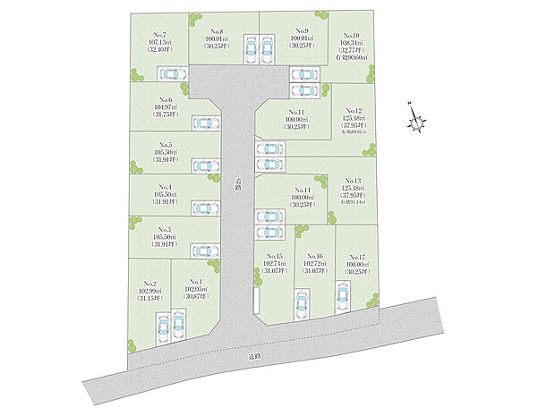 17区画 ※販売戸数または販売区画数は未定です。物件の取引内容及び取引条件は、本販売期以降の総販売戸数・本販売期以降の総販売区画数を基に表示しています。確定情報については本広告時に明示します