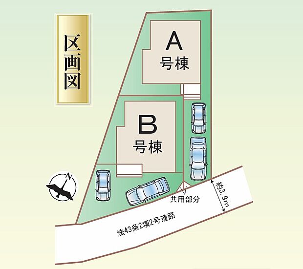 A号棟:南東3.9m /B号棟:南東3.9m