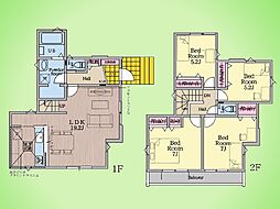 | 間取り | 4LDK 間取り内訳:リビングダイニングキッチン 17.5帖(1階)・洋室 5帖(1階)・洋室 7.8帖(2階)・洋室 6帖(2階)・洋室 5帖(2階) |
