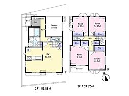 間取り内訳:リビングダイニングキッチン 15帖(1階)・洋室 5.2帖(1階)・洋室 7.2帖(2階)・洋室 5.2帖(2階)・洋室 5.1帖(2階)