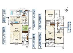 - 「建築条件付き土地」の「建物プラン例」は、土地購入者の設計プランの一例であり、プランの採用可否は任意です。