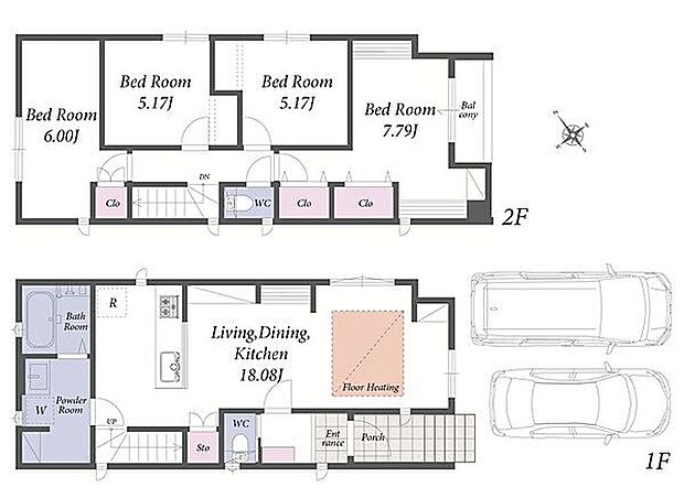 バスルームには浴室乾燥機採用。並列駐車可能なカースペース付き新築住宅です。