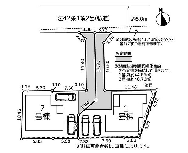 土地面積 169.89m2<私道負担面積41.78m2 私道負担割合1/2>