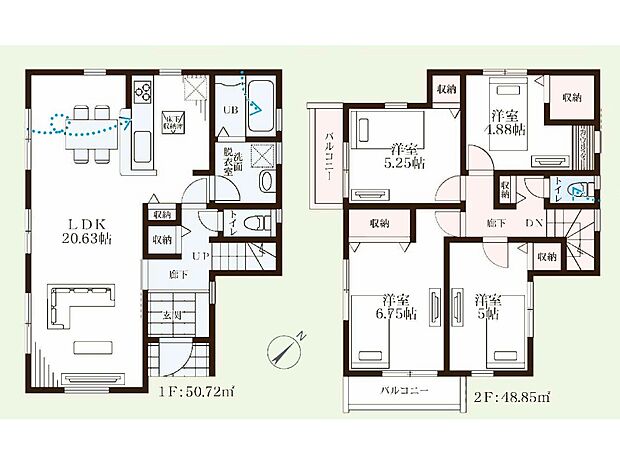 • 「建築条件付き土地」の「建物プラン例」は、土地購入者の設計プランの一例であり、プランの採用可否は任意です。