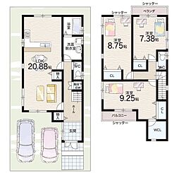 - 「建築条件付き土地」の「建物プラン例」は、土地購入者の設計プランの一例であり、プランの採用可否は任意です。