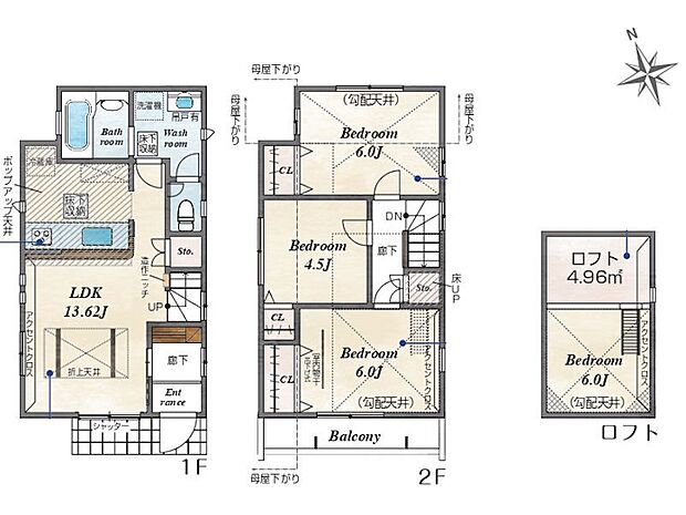 • 「建築条件付き土地」の「建物プラン例」は、土地購入者の設計プランの一例であり、プランの採用可否は任意です。