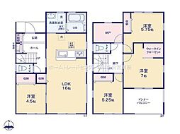 | 間取り | 4LDK 間取り内訳:リビングダイニングキッチン 16帖(1階)・洋室 4.5帖(1階)・洋室 7帖(2階)・洋室 6帖(2階)x2 |