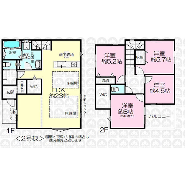 敷地面積約68坪/床暖房付き23帖LDK/収納豊富な4LDK/広々バルコニー