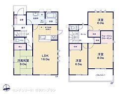 間取り内訳:リビングダイニングキッチン 16帖(1階)・和室 4.5畳(1階)・洋室 7帖(2階)・洋室 6.5帖(2階)・洋室 6帖(2階)