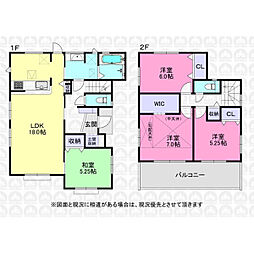 | 間取り | 3SLDK 間取り内訳:リビングダイニングキッチン 19帖(1階)・収納 1.6帖(1階)・洋室 7.5帖(2階)・洋室 6.5帖(2階)・洋室 6帖(2階) |