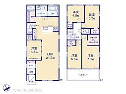 | 間取り | 4LDK 間取り内訳:リビングダイニングキッチン 19.5帖(1階)・洋室 8帖(2階)・洋室 5.8帖(2階)・洋室 5帖(2階)・洋室 4.5帖(2階) |