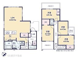 | 間取り | 4LDK 間取り内訳:リビングダイニングキッチン 20帖(1階)・洋室 6.5帖(2階)・洋室 5.3帖(2階)x3 |