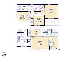 | 間取り | 4SLDK 間取り内訳:リビングダイニングキッチン 16帖(1階)・洋室 4.5帖(1階)・洋室 7帖(2階)・洋室 5.7帖(2階)・洋室 5.2帖(2階)・収納(2階) |