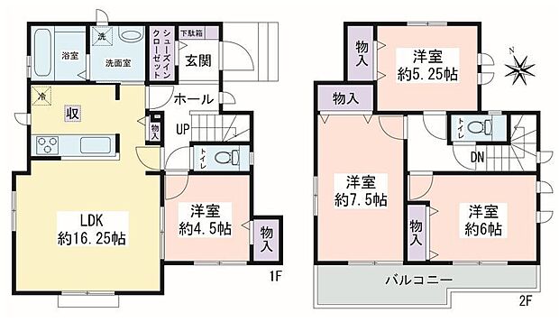 | 間取り | 4LDK 間取り内訳:リビングダイニングキッチン 16.2帖(1階) |