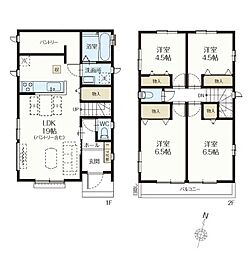 間取り内訳:リビングダイニングキッチン 19帖(1階)・洋室 6.5帖(2階)・洋室 6.5帖(2階)・洋室 4.5帖(2階)・洋室 4.5帖(2階)
